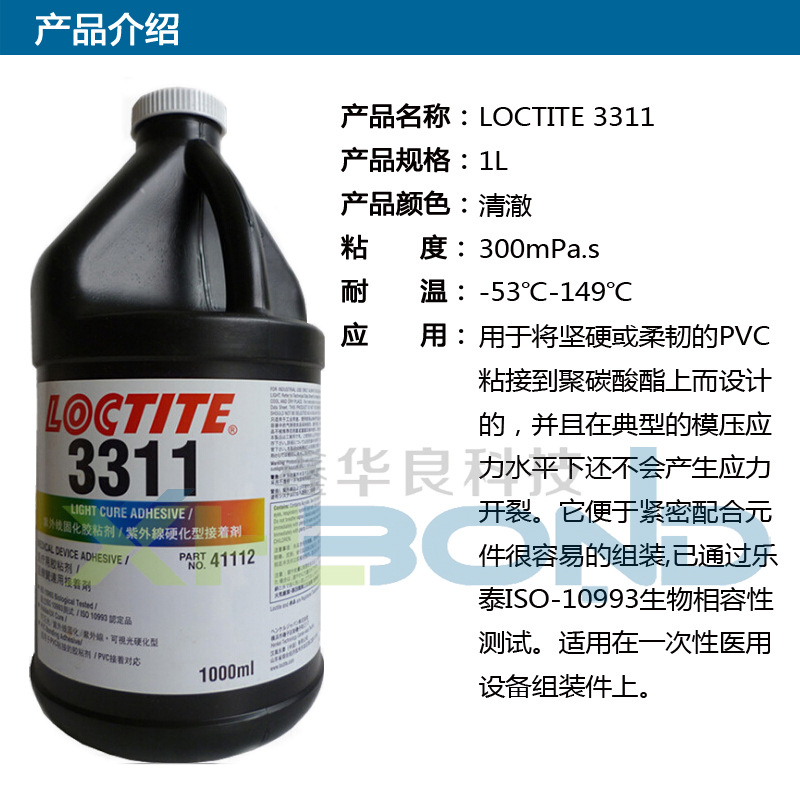 樂泰3311價格多少錢,樂泰3311它是一種低粘度可見光固化膠,非常適用于熱塑性塑料以及增塑PVC的粘接,鑫華良供應鏈專注銷售膠水行業20余年,產品遍及樂泰膠水系列,點膠設備(點膠工具),3M膠帶系列,預涂膠等等,如有需要請聯系我們的客服,期待與您的合作!