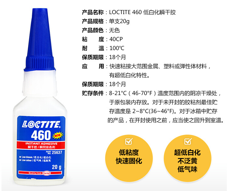 瞬干膠不管是在生活還是工業生產中都會經常用到,而在使用時我們也肯定會苦惱快干膠起白化的現象,其實有很多種方法都可以來減少或降低瞬間膠水的白化現像。LOCTITE-樂泰膠水,樂泰瞬干膠,丙烯酸膠粘劑。