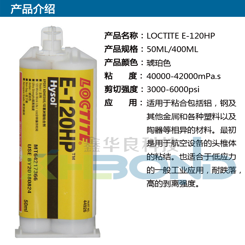 樂泰EA-120HP膠水是一種高粘度,不下垂堅韌的工業級環氧樹脂膠粘劑,具有延長的使用壽命。一旦將兩組分混合,loctite e-120hp就會在室溫下固化成堅韌琥珀色-米色,具有高的剝離強度和剪切強度的膠層。完全固化后,環氧樹脂具有優異的耐熱沖擊性能,機械性能和電氣絕緣性能,并且可以耐大多數化學藥品和溶劑。