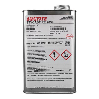 - 產品簡介:Henkel樂泰LOCTITE Hysol stycast RE2039環氧樹脂膠適用于各種電子應用的固化劑。,含有固化劑HD3475的HYSOL?樹脂RE2039是一種未稀釋的環氧樹脂100%固體體系,應該用于非常低的混合粘度不是關鍵要求的場合。