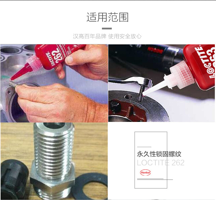 樂泰螺紋鎖固膠滴涂覆到固件螺紋上時,呈液態的樂泰螺紋鎖固膠會填充配套螺紋之間的間隙。涂覆后,鎖固劑固化形成堅硬的熱固性塑料,使螺紋鎖固在一起,從而防止有害的松動、泄漏和腐蝕。